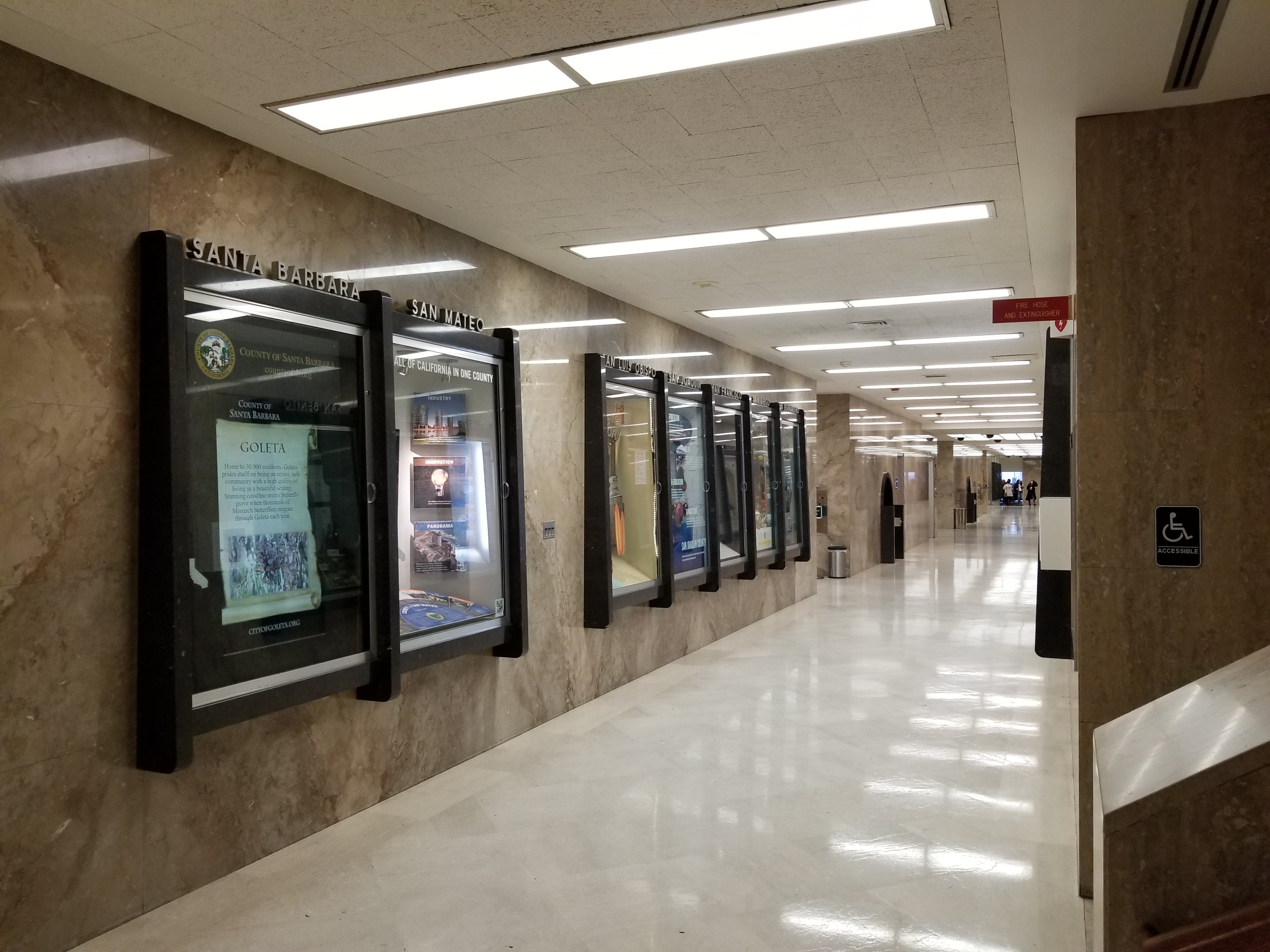 내부로 들어가면 아마 이런 복도부터 볼 수 있을 것이다. 캘리포니아에 다양한 도시들의 특성과 특산물? 같은 것을 진열해 놓았다.