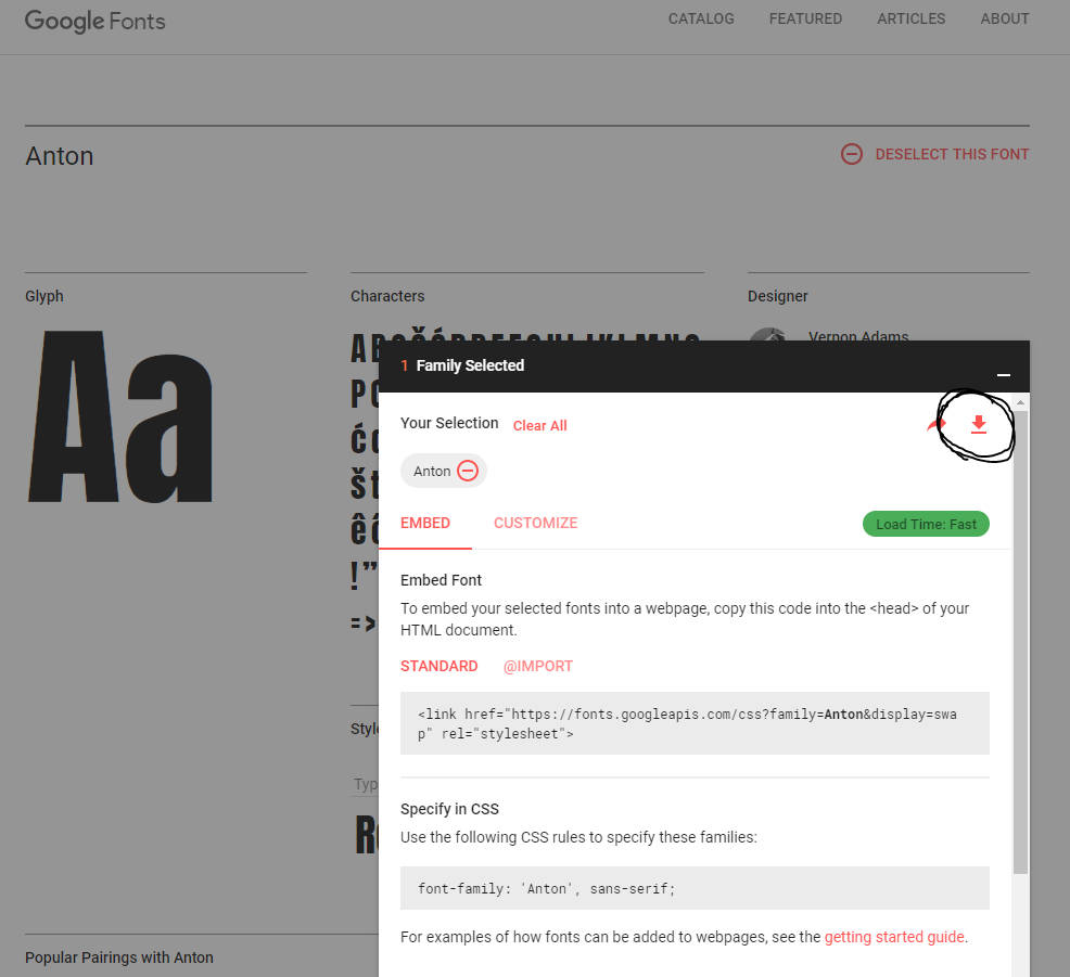 여기서 원하는 폰트를 검색후 아래 그림과 같이 다운로드.