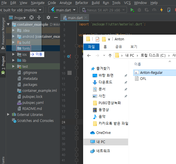 마우스로 끌어서 fonts폴더에 드랍.
