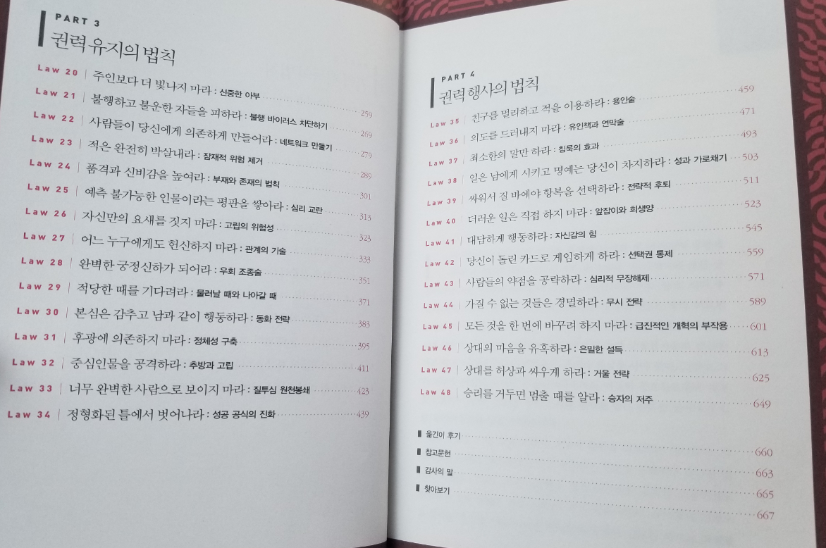 누군가에게는 그냥 그런 처세술 책 중 하나인 것으로 생각될 수 있지만, 개인적으로 세상을 살아가는데 필요한 지식을 책 한 권에 잘 남아냈다고 생각한다.