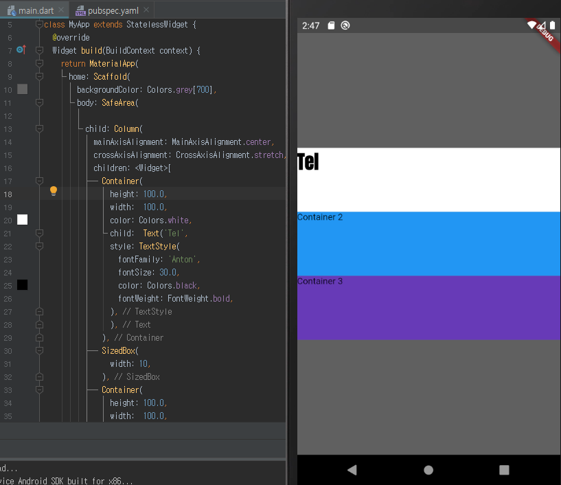 | [Flutter] Column or Row 에 Container 여러개 배치 및 정렬 (0) | 2019.11.11 |
