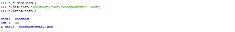 아래와 같이 클래스 내부에 print_info(self) 함수를 붙여주면된다.