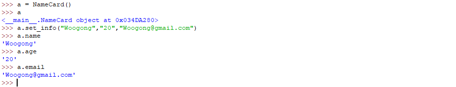 a라는 변수에 클래스를 씌운후, 아래와 같이 콘솔에서 명령어를 치게 되면 a라는 클래스변수에 어떤 내용들이 들었는지 확인가능.