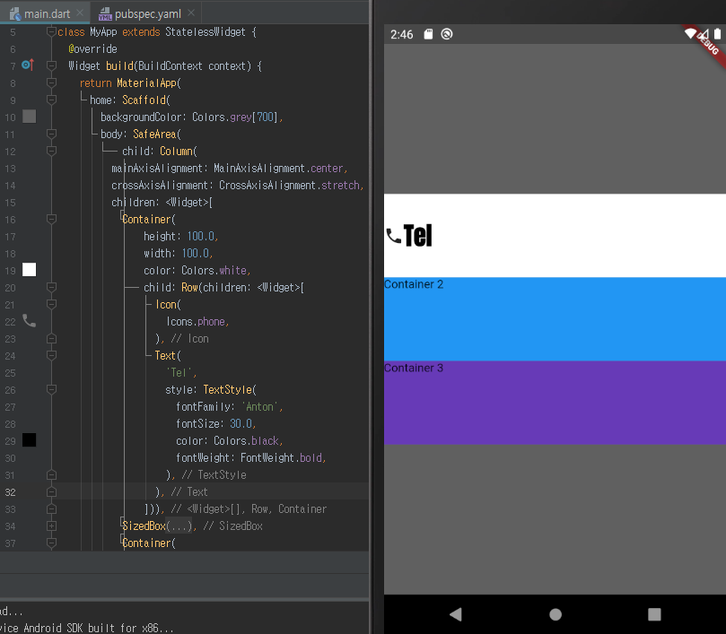 | [Flutter] Column or Row 에 Container 여러개 배치 및 정렬 (0) | 2019.11.11 |