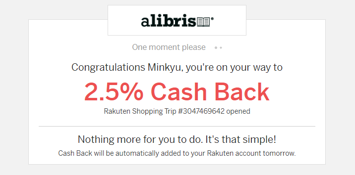 참고로 아마존은 라쿠텐을 이용한 캐시백 금액이 적립 안 되는데 알리브리스는 무려 2.5%나 적립 가능하다.