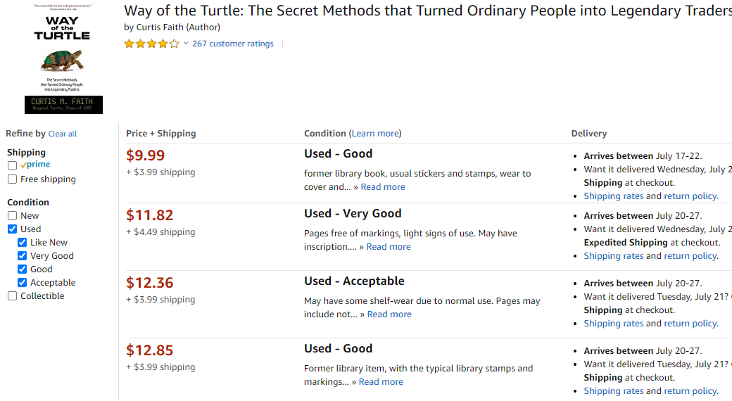아마존과 가격 비교해 보자. 물론 본인이 원하는 책에 따라 아마존 가격이 더 저렴할 수도 있겠는데, 하지만 일반적으로 알리브리스가 아마존에서 판매되는 중고책 가격보다 더 저렴했다.