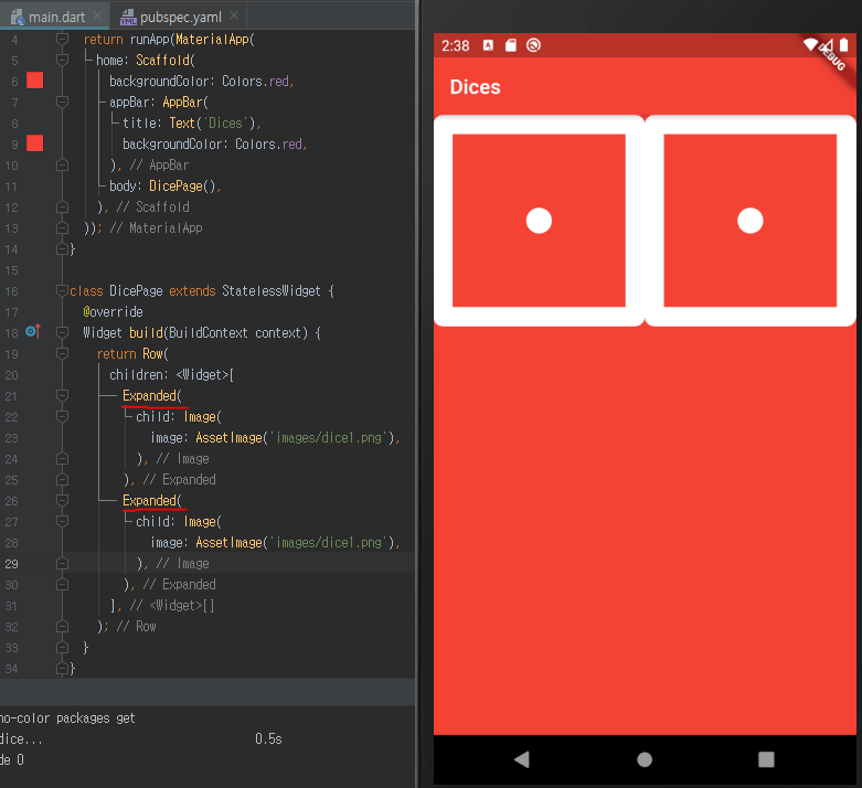 두개의 사진을 한 열에 가득 채우고 싶을때는 같은 Row에서 Expaneded 두번 사용
