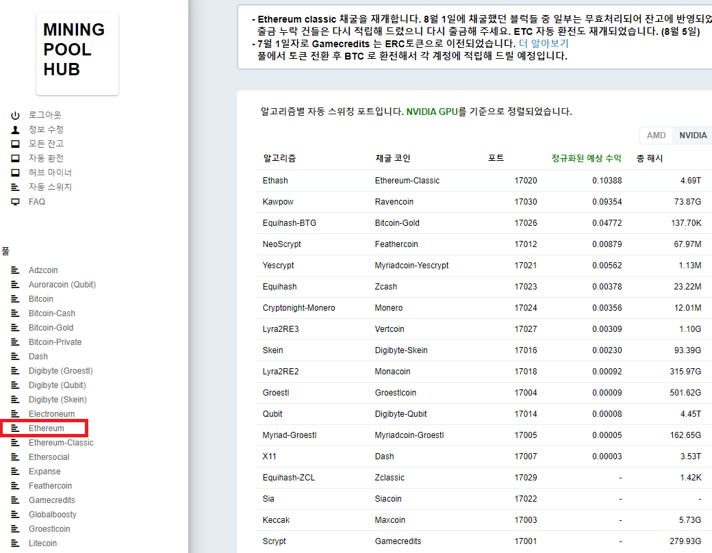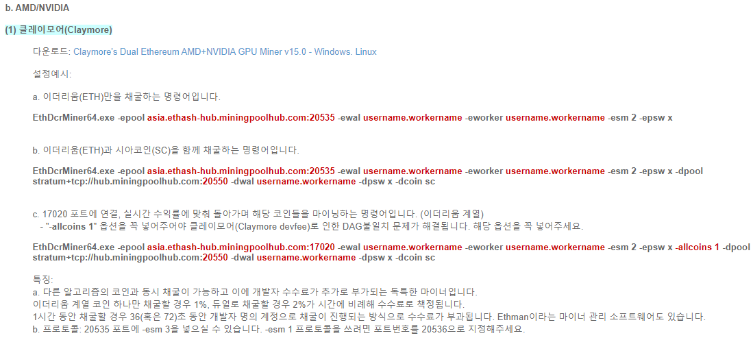 Updated: 2021년 1월 부터 마이닝 풀허브에서 더이상 클레이모어 지원하지 않음.
