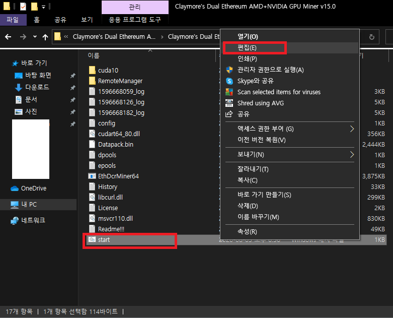 다운을 다 받으시고 아래와 같이 폴더 내부로 들어간 후에 편집을 누르시면 아래와 같이 텍스트 창이 뜨게 됩니다.