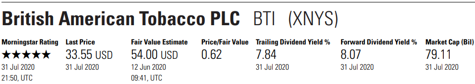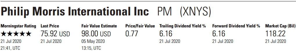 말보로로 유명한 필립모리스 인터내셔널 2008년에 알트리아(구 필립모리스)에서 분할되어서 나옴. 코로나바이러스 때문에 2020년 1, 2분기는 실적이 안 좋게 나오긴 했다. 그래서 아마도 2020년 예상 매출 및 수익을 저년 대비 낮게 잡은 듯.