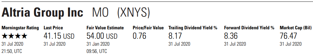 말보로로 유명한 필립모리스 인터내셔널 2008년에 알트리아(구 필립모리스)에서 분할되어서 나옴. 코로나바이러스 때문에 2020년 1, 2분기는 실적이 안 좋게 나오긴 했다. 그래서 아마도 2020년 예상 매출 및 수익을 저년 대비 낮게 잡은 듯.