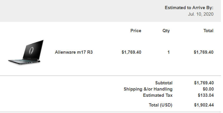 6월 말에 큰맘 먹고 게임용 랩탑 하나 질렀다. 원래 가격은 거의 $2,000불이었는데 쿠폰 먹여서 $1,769까지 할인.