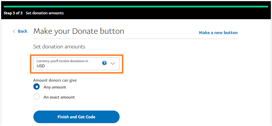 미국 달러로 받거나 한국 원화로 받을지 설정할 수 있다. 그리고 유저가 직접 금액을 입력하거나 아니면 버튼 눌렀을 때 정해진 금액을 받을 수 있도록 "An exact amount"로 설정할 수 있다.