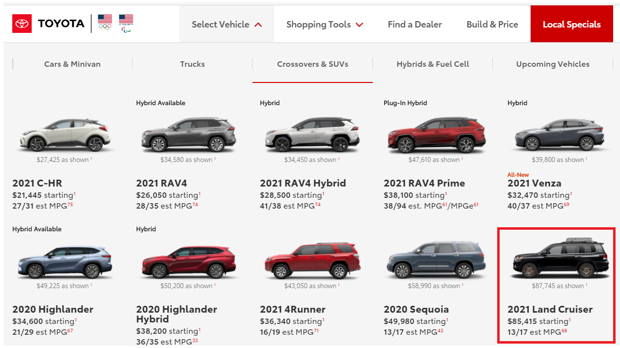 지금까지 명맥을 이어오는 라인은 뭔가 장점이 있어도 있겠지 생각하고 도요타 공식 홈페이지에서 찾아봤다.