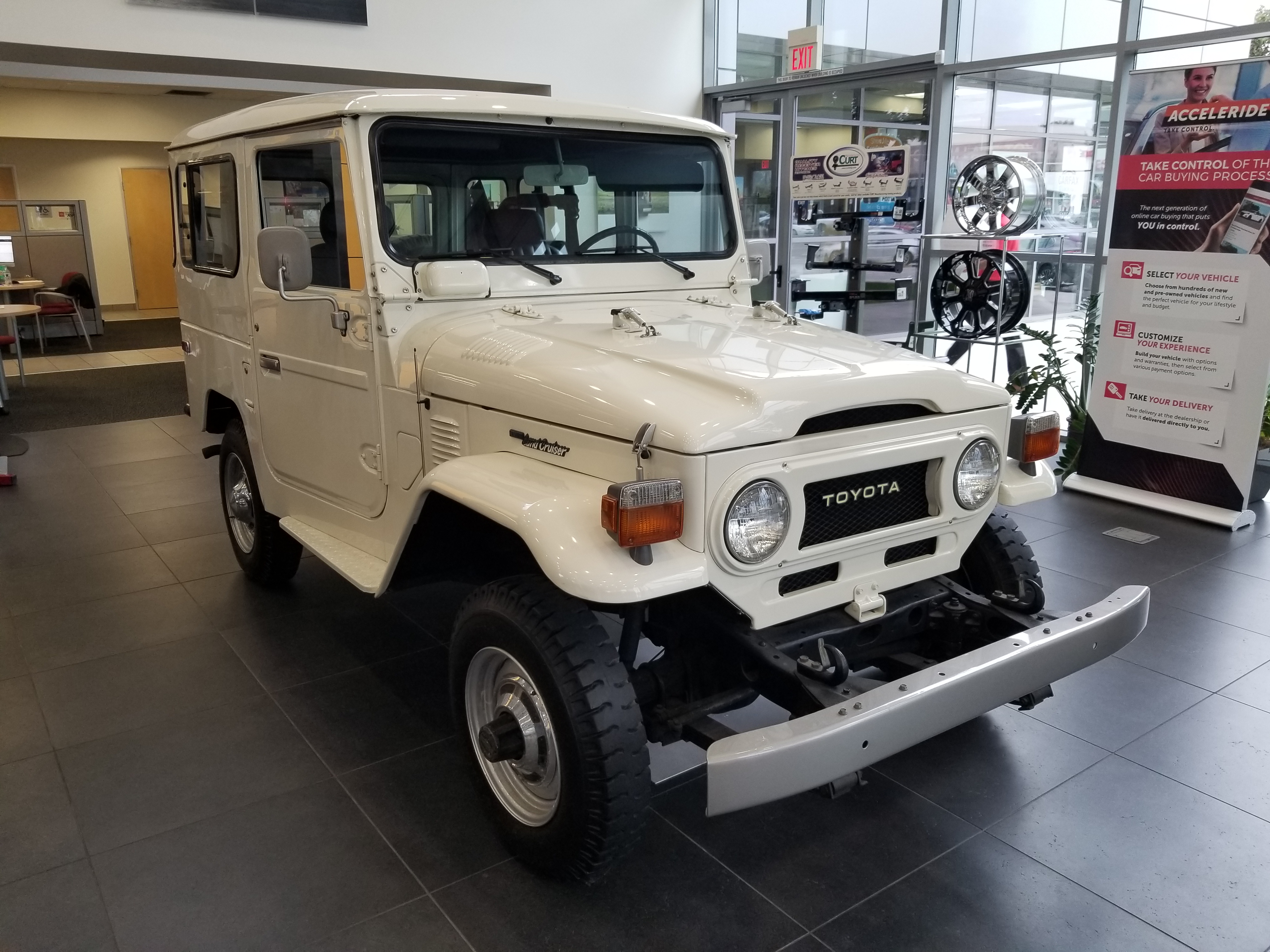 예전에 삼촌 Rav4를 사러 가기 위해 들렀던 도요타 딜러십에서 전시해놓은 랜드 크루즈. 간단하게 랜드크루저의 역사를 보면, 토요타에서 1951년부터 현재까지 생산되고 있는 사륜구동 SUV. 또한 토요타에서 가장 오랜동안 생산되고 있는 모델명이기도 하며, 캠리와 함께 토요타를 상징하는 대표작이다. 첫 랜드크루저의 생산은 일본의 지프 자동차 개념으로 탄생하였다. 박스카처럼 전반적인 사각형 모양과 모서리 부분에 둥근 유리창문이 너무나 매력적이다.
