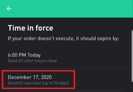 이렇게 주문할 경우 시간 외 거래와 90일 동안 주문이 유효한지 다시 확인한다.