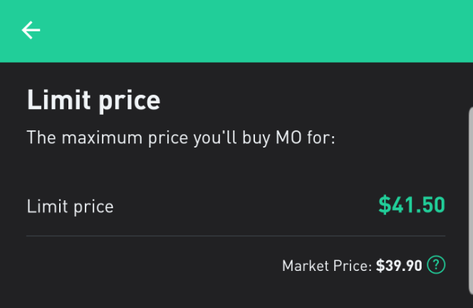 현재 가격이 $39.90인데 가격이 $42.00으로 진입하는 순간 지정가 주문(Limit Order)이 $41.50에 들어간다.
