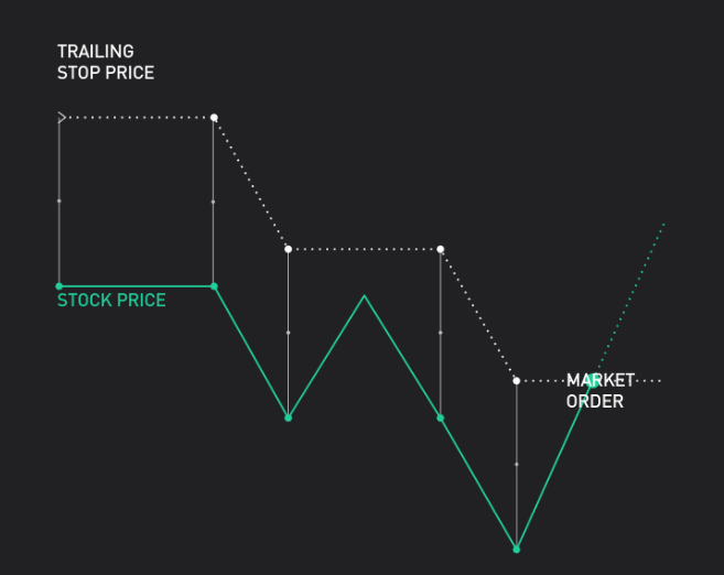 1번의 경우 예를 들어보자. 현재 가격이 $39.90인 경우 1% 로 트레일링 스탑오더를 넣게 되면 우선 주문 발동 가격이 ($39.90 * 1.01) = $40.30으로 설정이 된다. 만약에 하락해서 주식 가격이 $38.00이 된 경우 주문 발동 가격이 ($38.00*1.01) = $38.38로 재 설정이 된다. 하락이 멈추고 다시 상승을 시작할 경우 $38.38에 도달하는 경우 시장가로 주문이 접수되면서 주식을 매수하게 된다.
