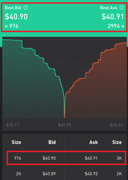 즉 기본 설정으로 주문 시 40.91에 체결이 된다. Bid Ask 스프레드가 벌어지는 경우에는 무조건 매수 시 Ask가격 매도 시 Bid가격으로 체결되니 호가창을 한번 확인하고 마켓오더를 넣기 바란다.