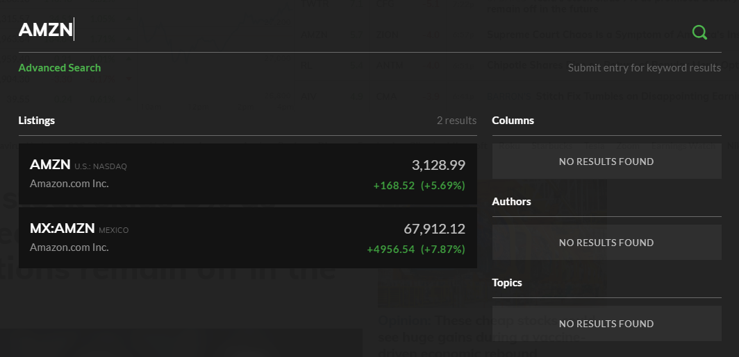 접속을 하면 우측 상단에 돋보기 모양을 눌러서 회사 이름이나 티커를 입력하면 회사를 찾을 수 있다.