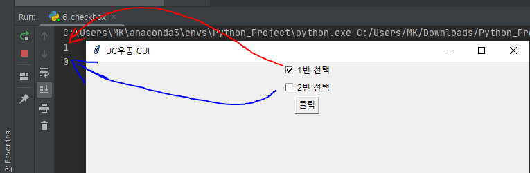 chkbox2 = Checkbutton(root,text="2번 선택", variable=chkvar2)