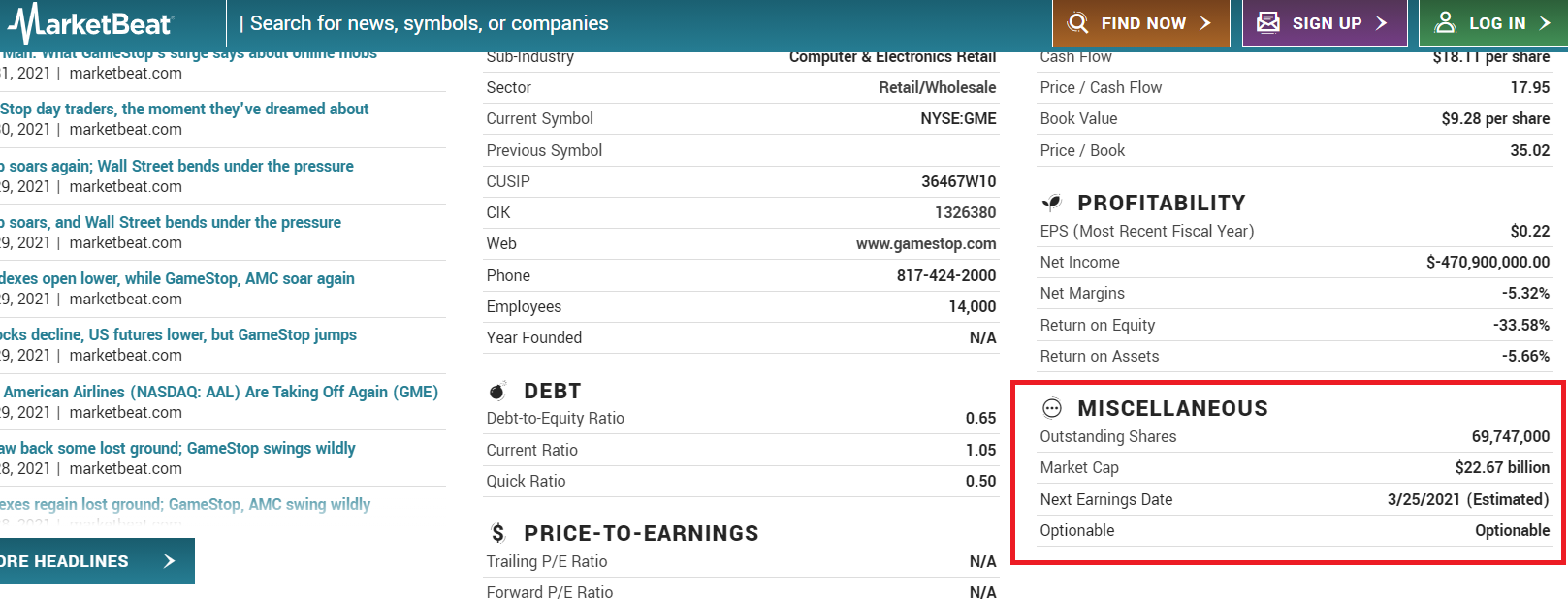최근 며칠간 주식을 하지 않는 사람이더라도 미국의 게임소매점인 "GameStop"을 들어보았을 것이다. 게임스탑 주식거래에서 유통주식 수를 넘어서 기관들이 공매도했다. 우선 관련 내용은 이미 다 알고 있는 상황이니 현재 게임스탑에 대해서 알아보면서 차후에 다른 특정 종목에서 공매도 수량을 확인하는 방법을 알아보자.