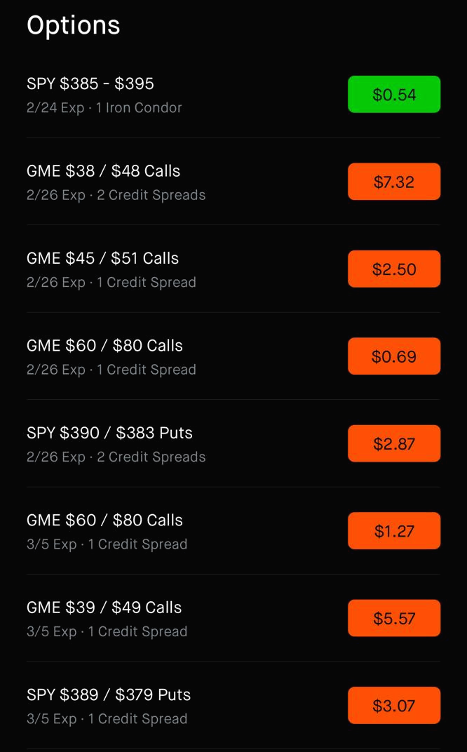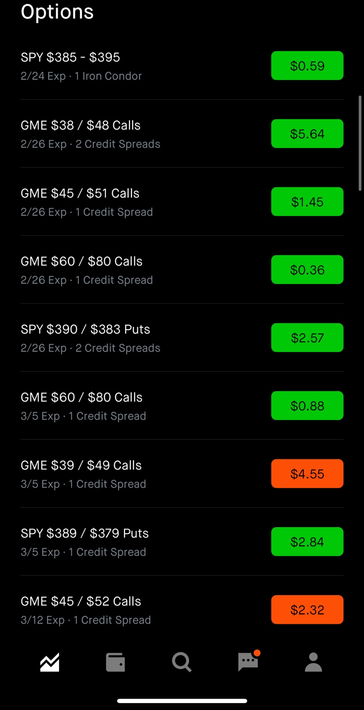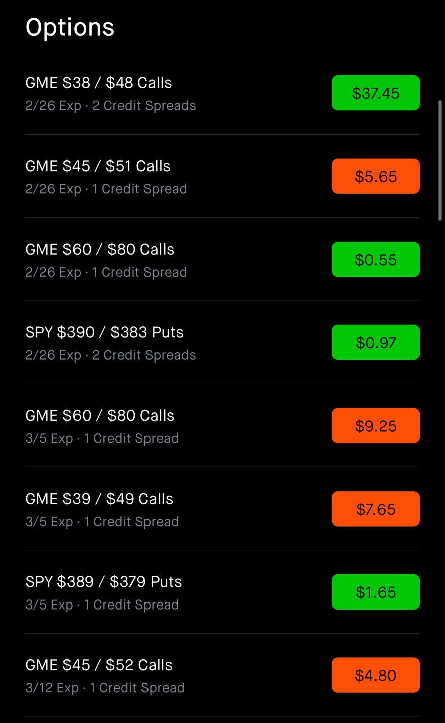 며칠 사이에 GME 38 Call sell + 48 Call buy 상품이 그냥 최대 손실 폭에 도달해버렸다. 제일 마지막 사진을 보면 최대 손실 폭인 $10.00을 넘어서 $37.45로 진입했다. 이미 GME가격이 $180 저세상을 가버려서 $38콜 거래가 일어나지 않아서 생긴 오류이다. 결제일에는 제대로 고쳐져서 결제될 듯. 다행히 옵션매도 시에 스프레드를 너무 크게 벌리지 않고 대부분 $10 (최대손실 $1000)으로 옵션매수로 햇지를 해서 문제가 터져도 타격이 그렇게 크지 않았다. 만약에 조금 더 욕심을 부려서 게임스탑을 무리하게 매도했으면 아마도 계좌가 날아가지 않았을까 생각이 든다. 확실한 건 시간이 지나면 게임스탑의 가격은 이전의 가격대로 회귀함이 틀림없다. 자의적이든 타의적이든 현재 DFV의 선동으로 인해 레디터들이 GME를 매수하고 있다. 매 분기마다 손실을 내는 게임스탑이 다시 정상으로 회귀하는 건 마치 예전 필름카메라에서 코닥(Kodak)이 카메라 필름을 팔아서 매출을 정상으로 올리는 것과 같은 상황일 것이다. 현실적으로는 거의 불가능하다고 본다.