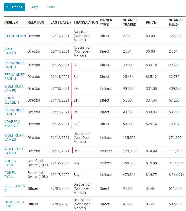 게임스탑 기업 내부자 거래를 나스닥 공지에서 확인해보면 기업내부자인데 자의적으로 매수를 한 경영진은 단 한 명도 없다. 정말로 장기적으로 회사에 미래가 있다면 적극적으로 기업 내부자가 회사 주식을 매수하리라 생각이 든다.