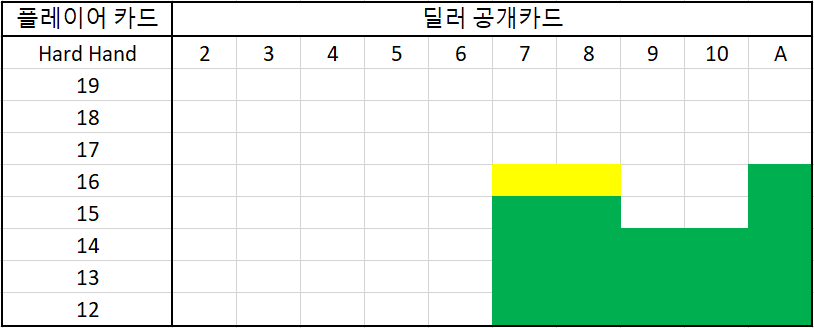 "5 카드 없는 경우" 하드핸드는 아래와 같다.