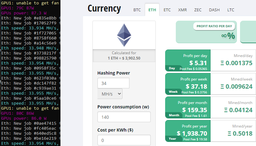 링크: www.cryptocompare.com/mining/calculator/eth