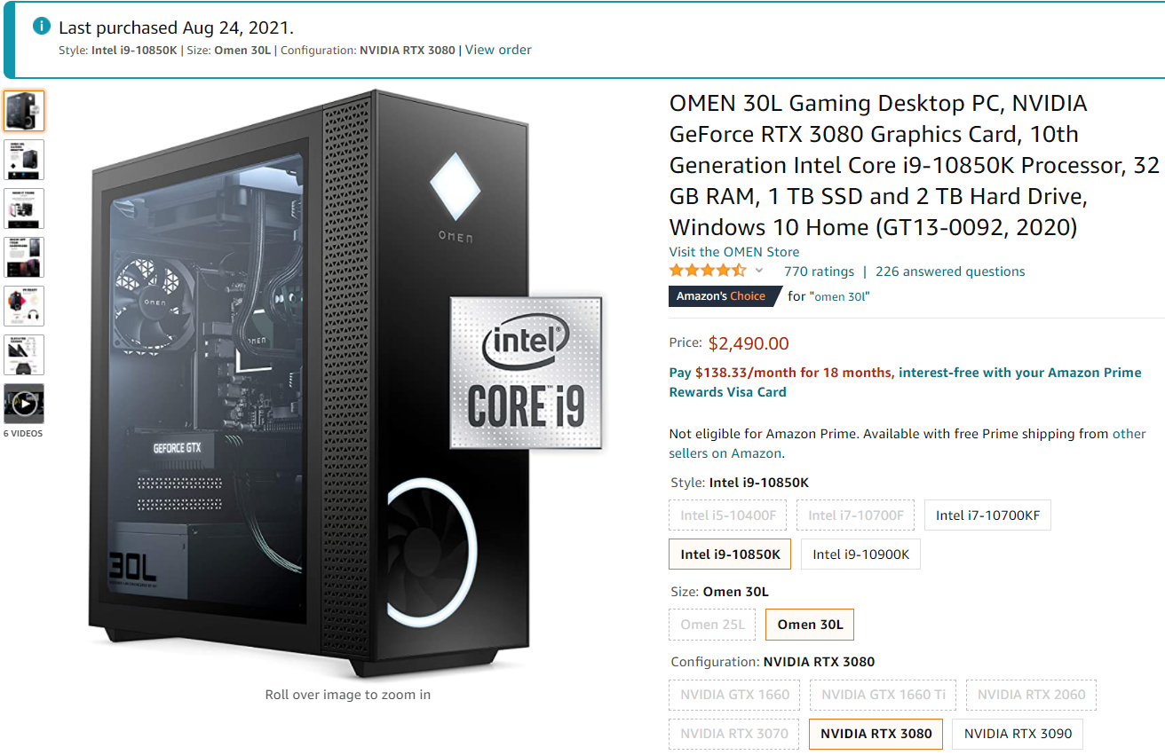 최근에 이사하고 나서 데스크탑을 새로 장만했다. 원래는 항상 하던데로 CPU, Mainboard, Ram등 부품을 하나하나 주문해서 본인 기호에 맞춰서 조립하려고 했는데, 그래픽 카드 가격이 너무 비정상이어서 그냥 대기업 완본체를 사는 게 훨씬 저렴한 상황이었다. (라이젠 5900X가 좋아서 맞추려고 했는데, HP에서는 물량 수급 문제 때문인지 라이젠 CPU로 잘 안나온다.) 결론적으로 HP Omen 브랜드 PC를 아마존에서 구매하게 되었다.