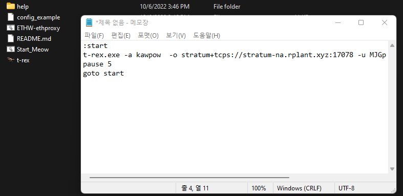 (참고로 NBminer로는 Meowcoin채굴 오류가 발생한다. 본인 컴퓨터 문제거나 채굴 풀 서버 문제인듯.)