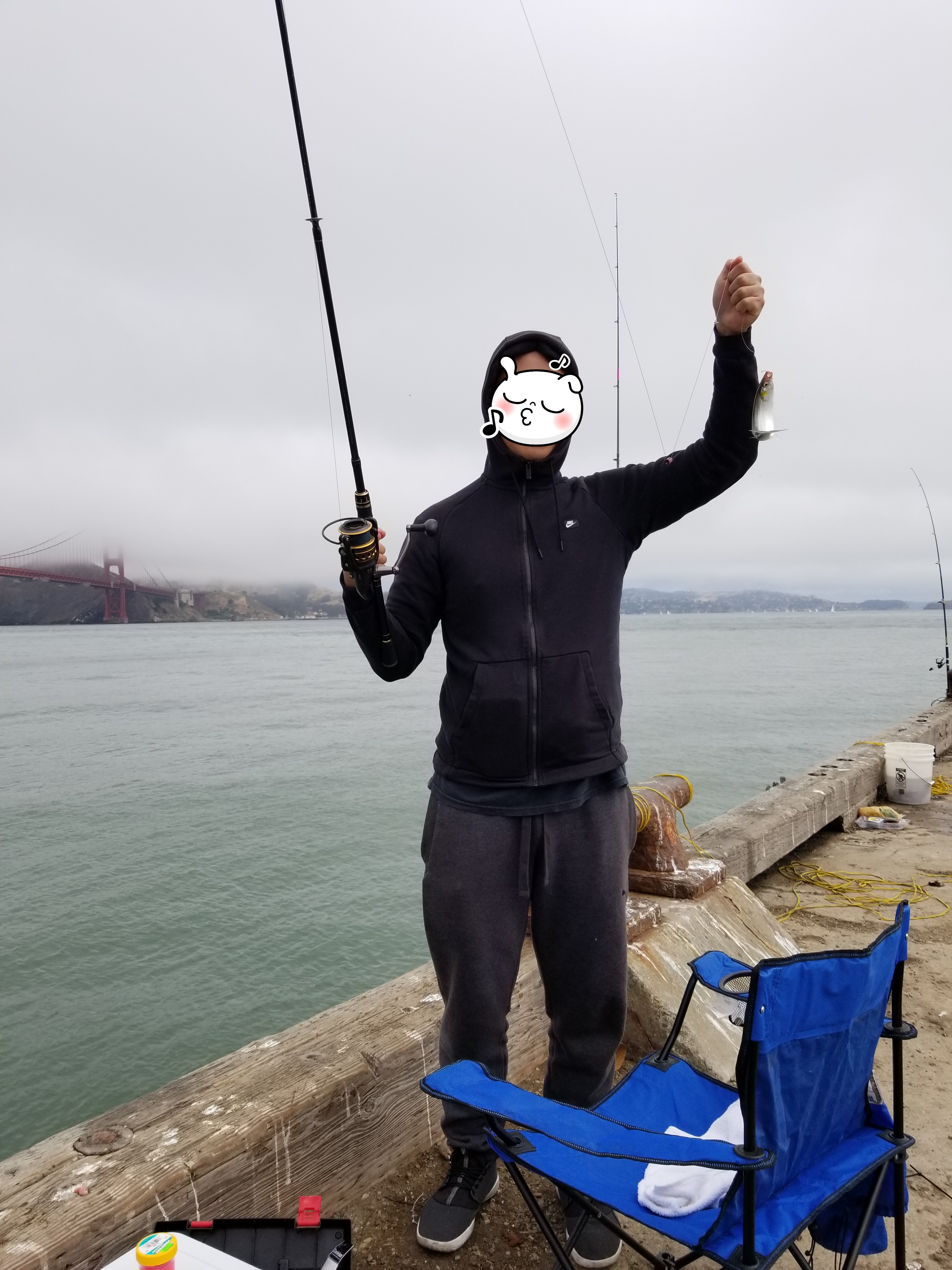 도중에 동생이 가져온 미끼로 너무 안 잡혀서 게 잡으려고 가져온 생닭 미끼로 써서 꽁치 같은 생선(Jacksmelt) 획득ㅋㅋ