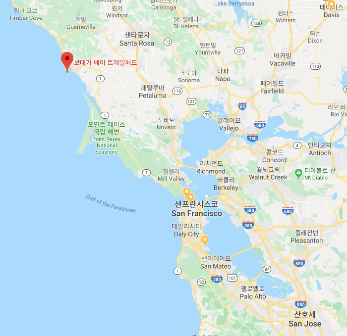 위치는 샌프란시스코에서 1시간정도 북쪽으로 운전해서 가면 도착할 수 있습니다.