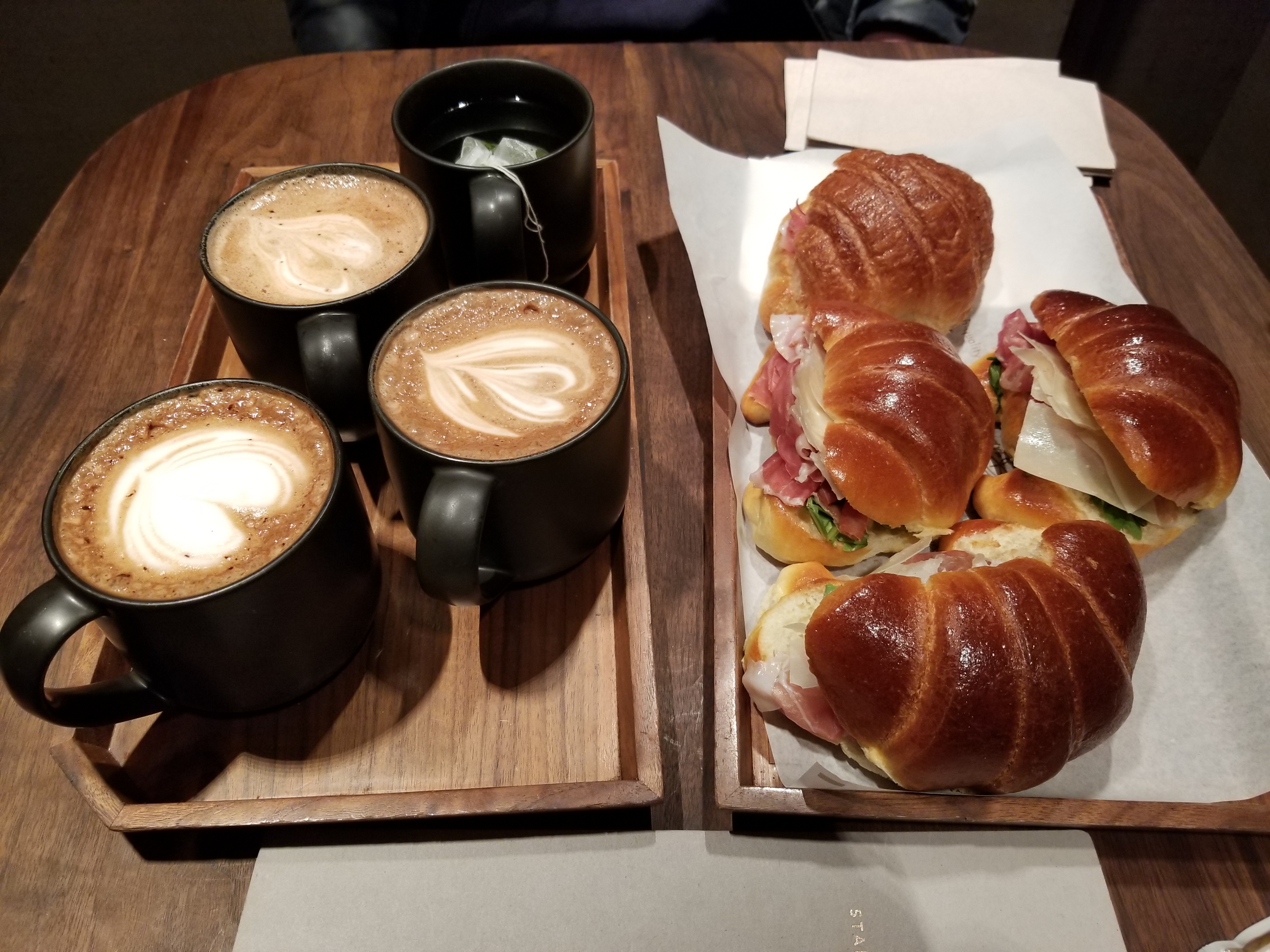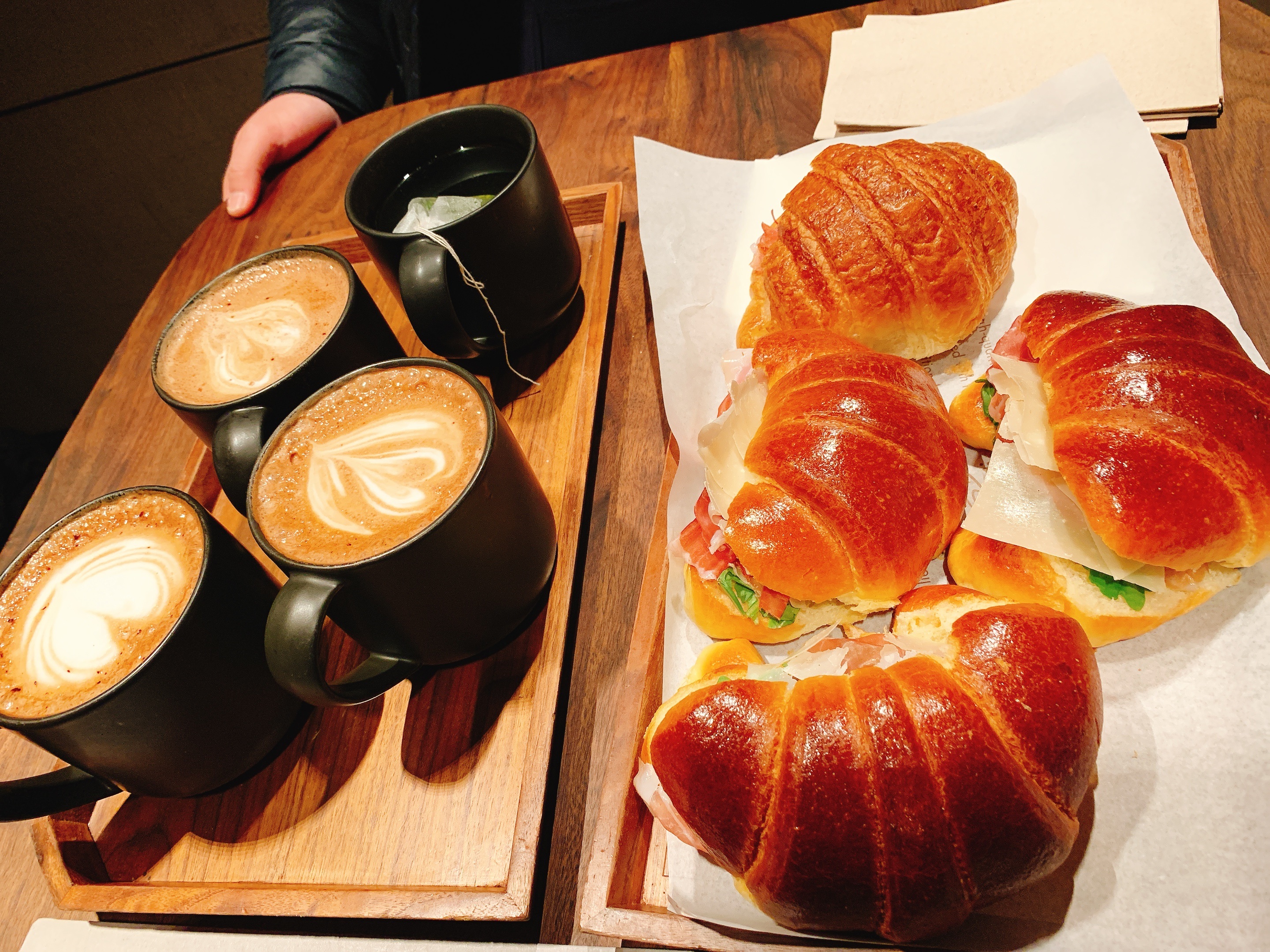 가격은 녹차 $5.5, 모카 $7.5, 크루아상 샌드위치 $9.5 (크루아상이 가격 창렬, 심지어 무게도 솜털 같았다능.....)