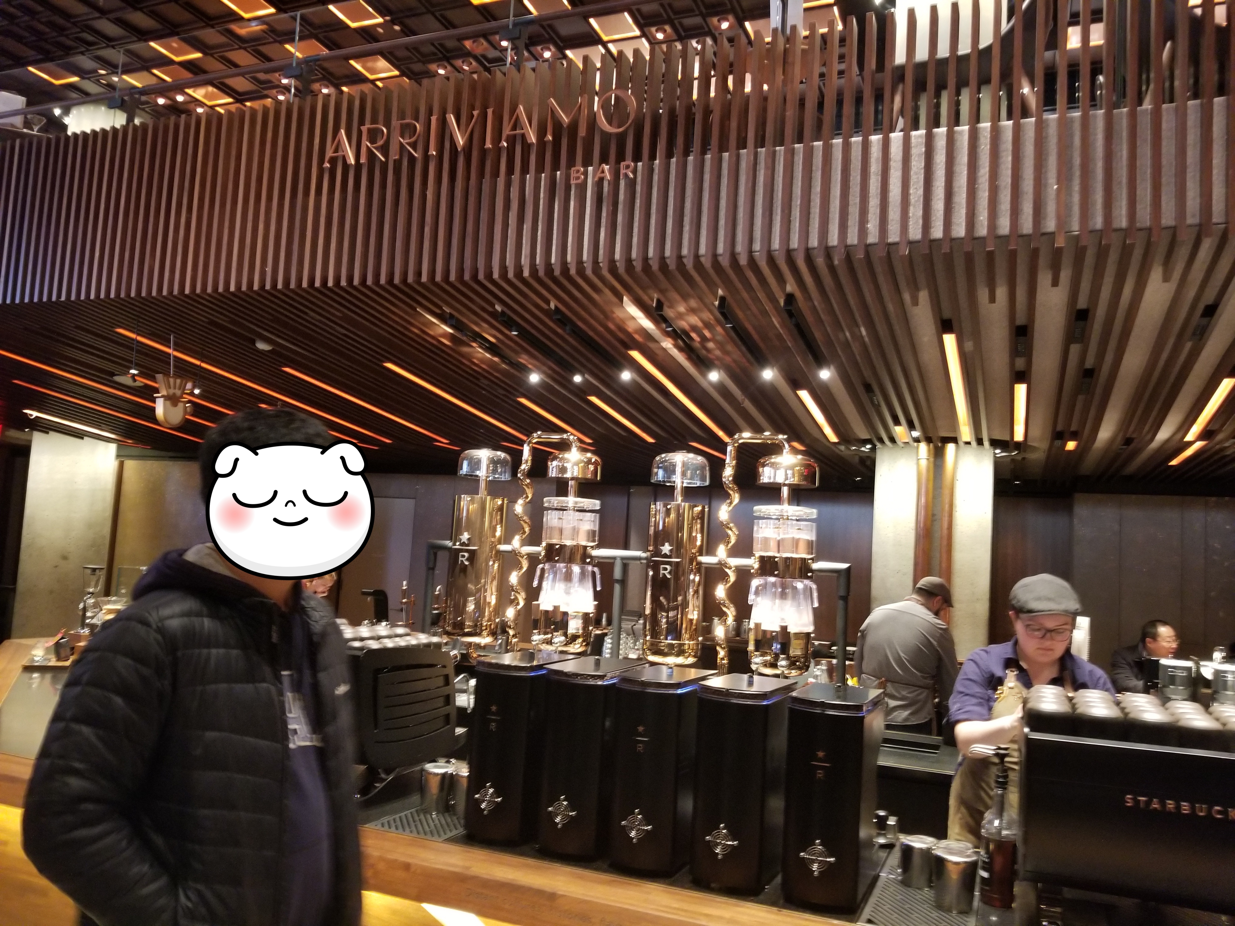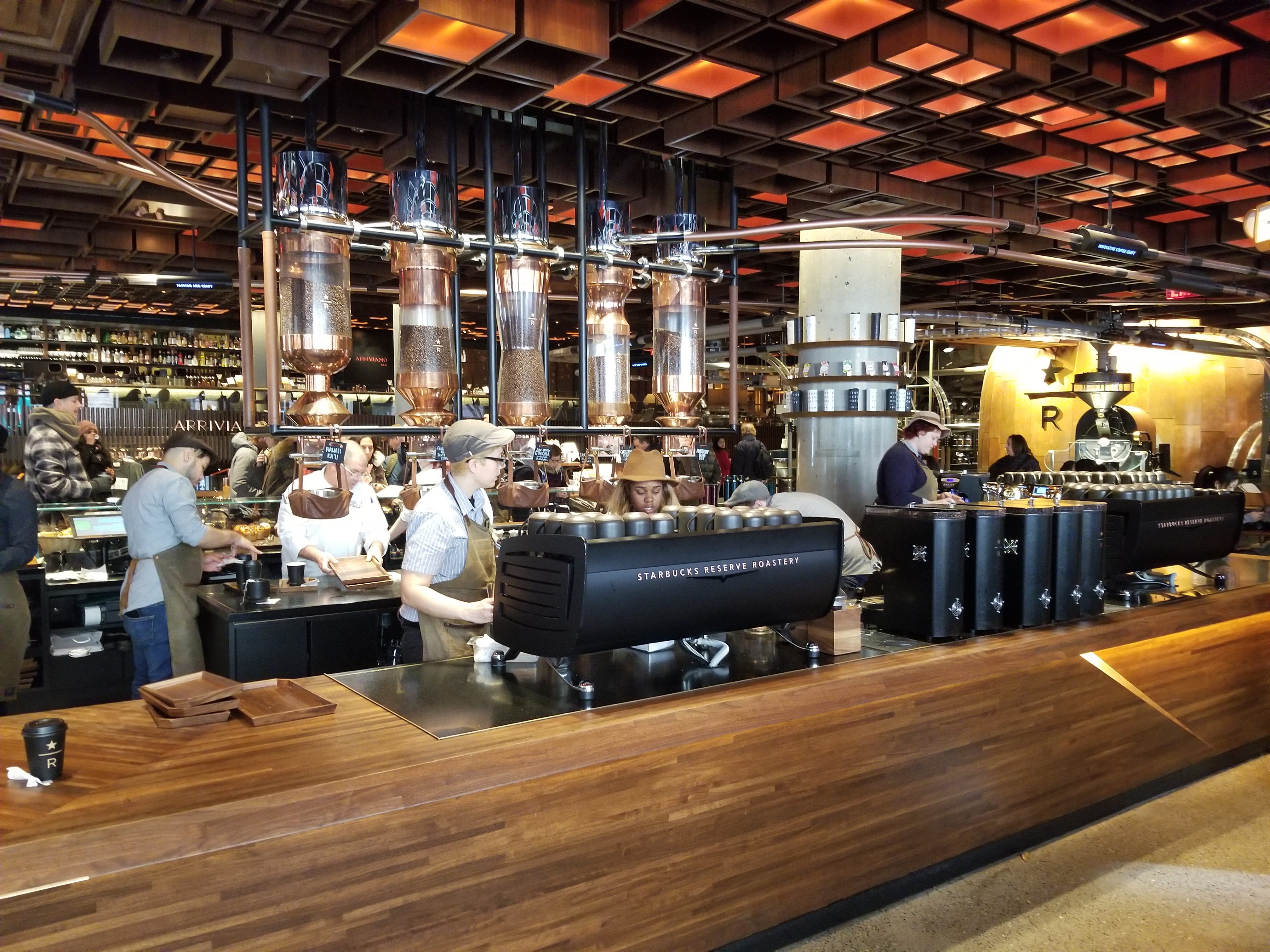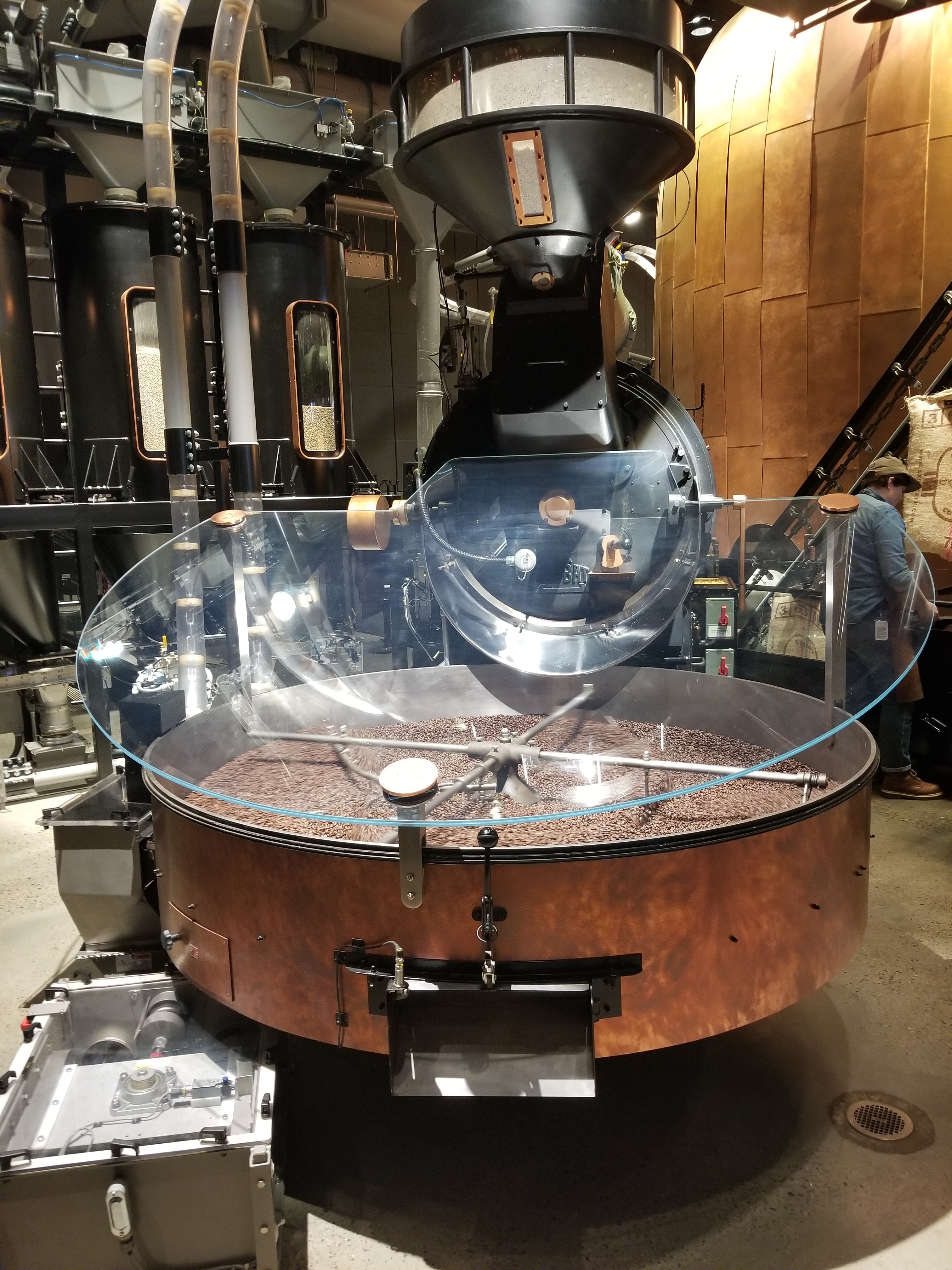 입구부터 일반 스타벅스와 다른 느낌같은 느낌. (땡스기빙 바로 다음 날인 블랙프라이 데이에 가서 그런지 사람이 생각보다 많지는 않았다. 처음에는 로스팅 기계 앞에 Bar 처럼되 있는 부근에 바로 자리 잡았다가 테이블에 자리가 나서 테이블로 이동.