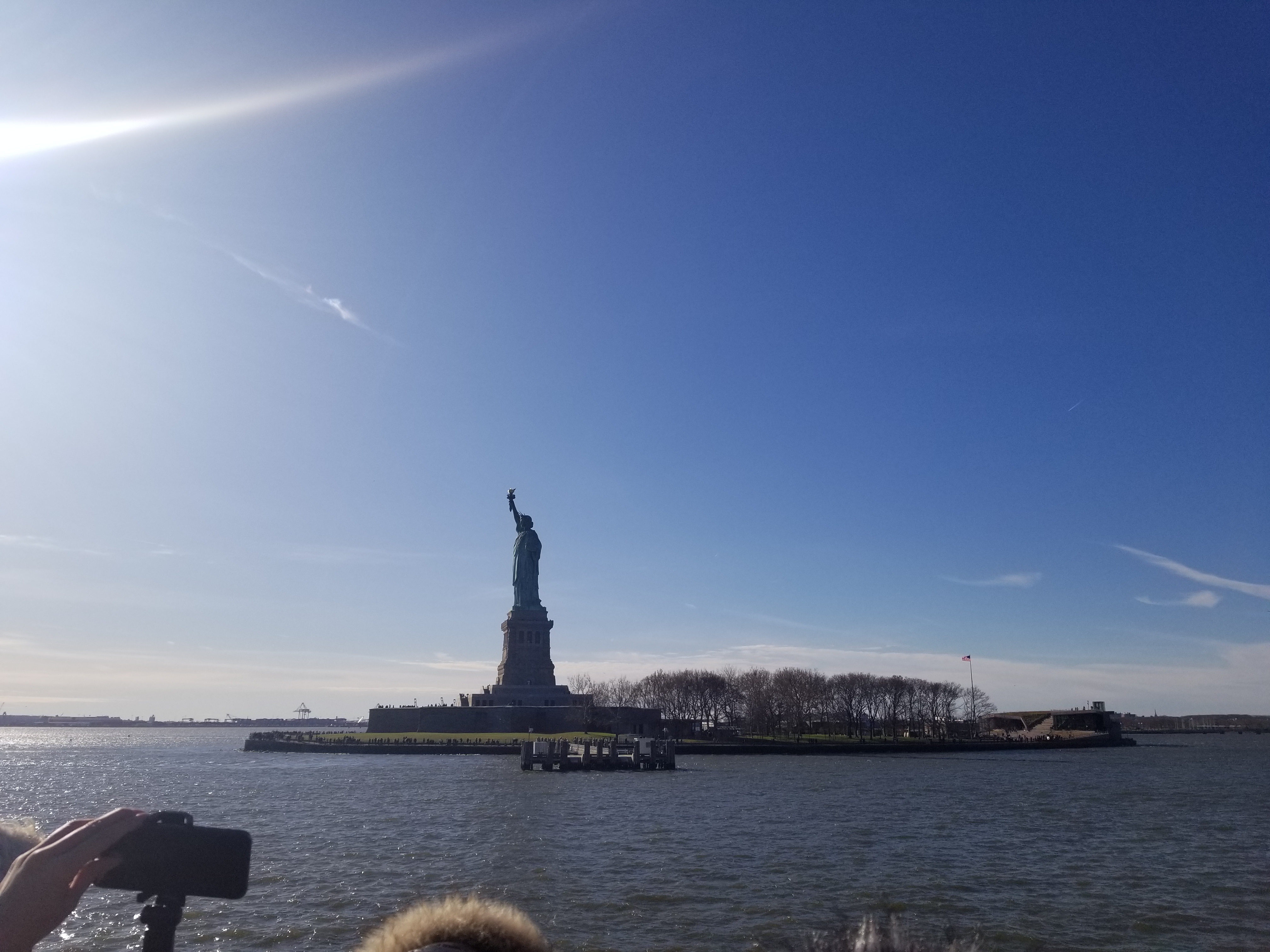 몇 분정도 찬바람을 가르면서 지나다보니 자유의 여신상이 보이기 시작합니다.