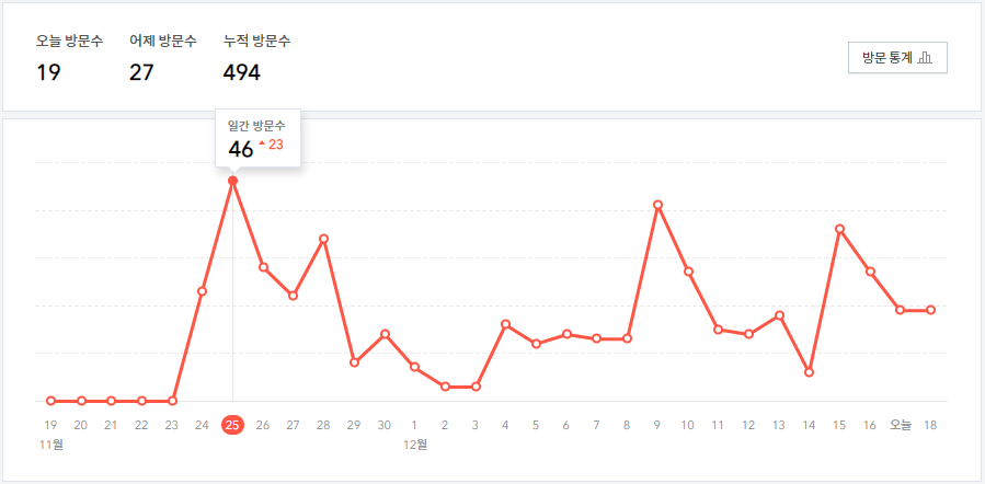 개설일은 6월 중순쯤 같은데 제대로된 블로그 시작은 2019년 11월 23일 부터 시작하였다.