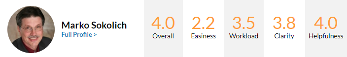 본인은 Marko Sokolich 교수님 수업 들었다. (일대일로 질문하면 친절하게 설명 잘해주시는데 수업은 정말 졸리다.)