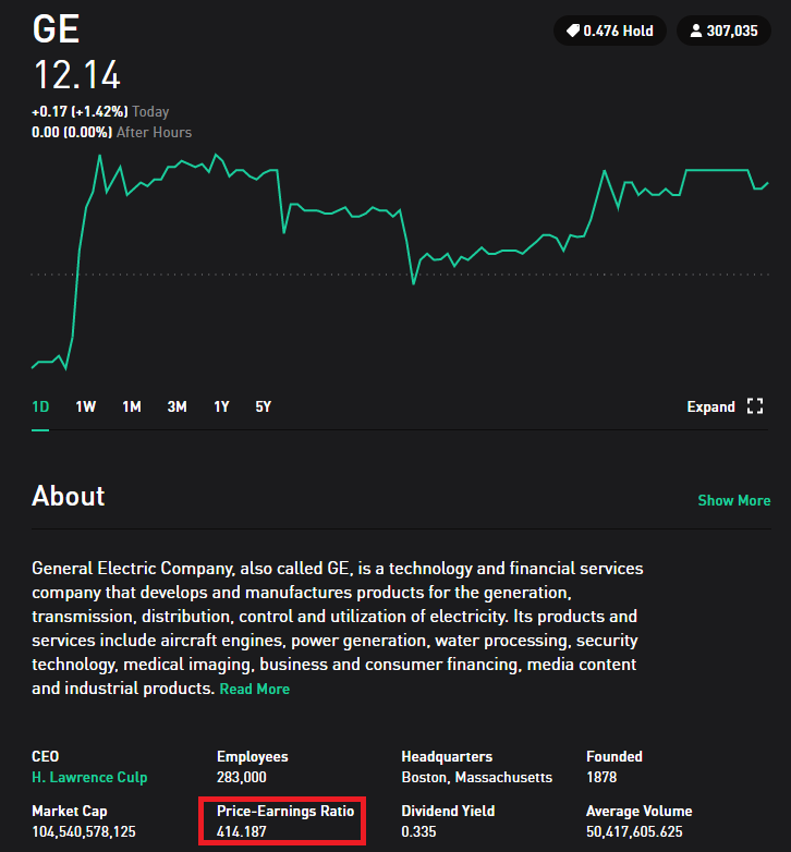 애증의 GE.. 그래도 최근에 적자 탈출 했나보다. PER이 양수로 바뀐거 보니.