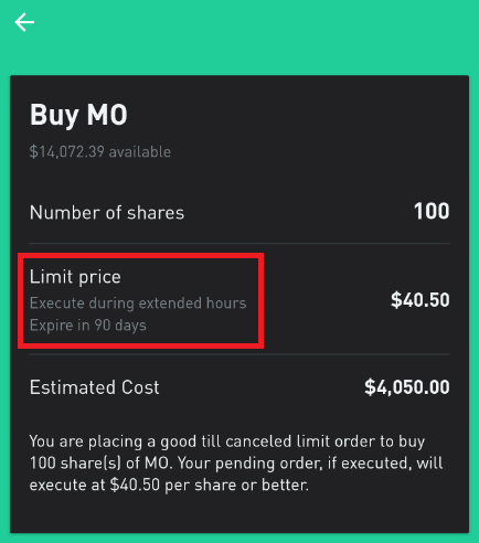 이렇게 주문할 경우 시간 외 거래와 90일 동안 주문이 유효한지 다시 확인한다.